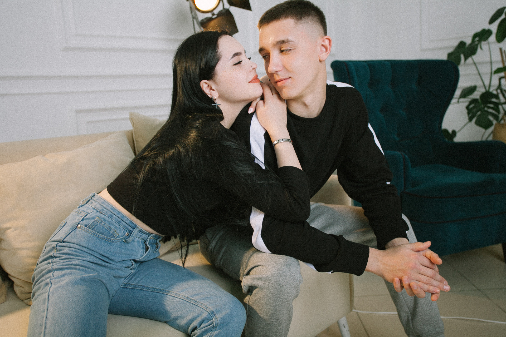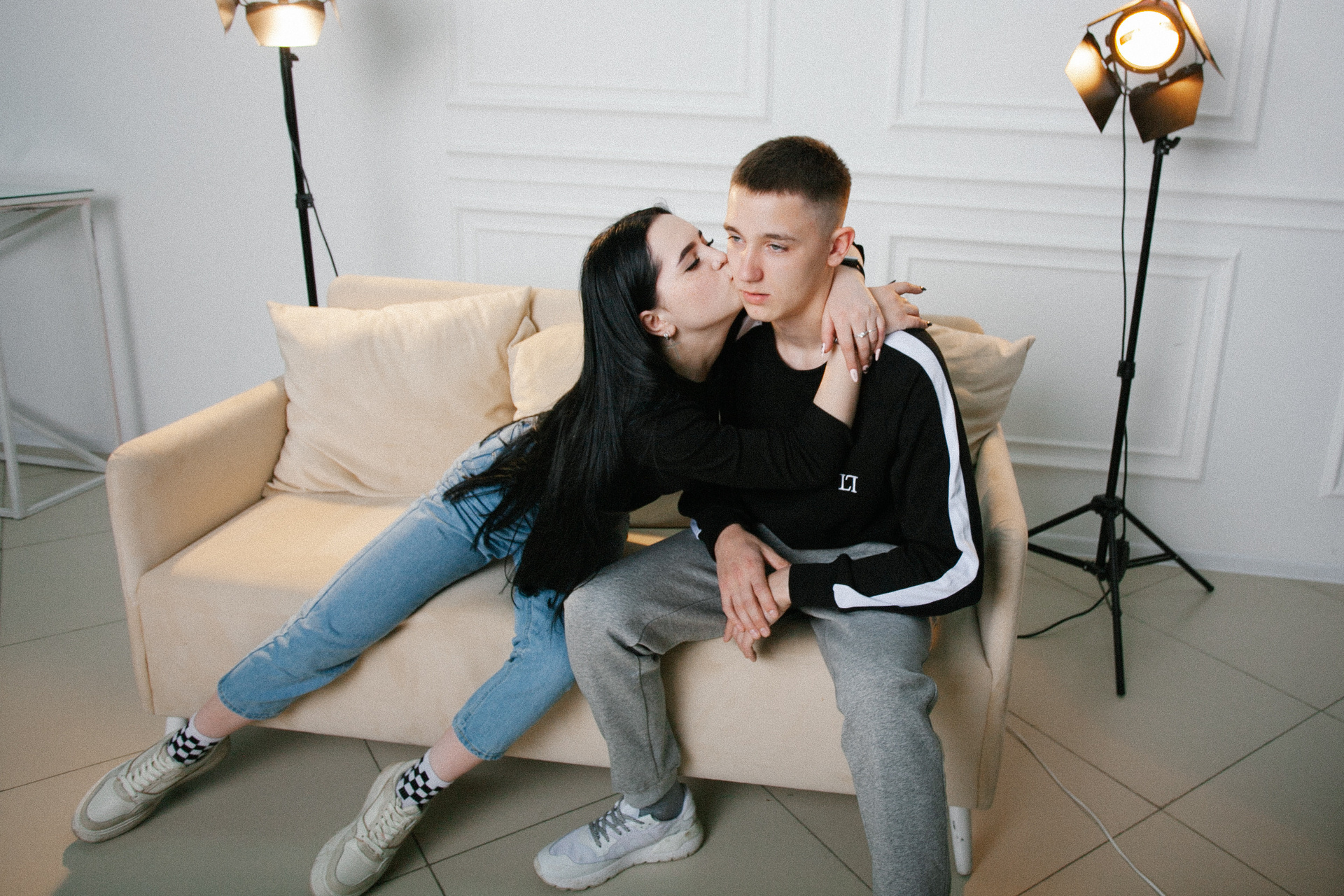 девушка парень любовь романтическая фотосессия в фотостудии