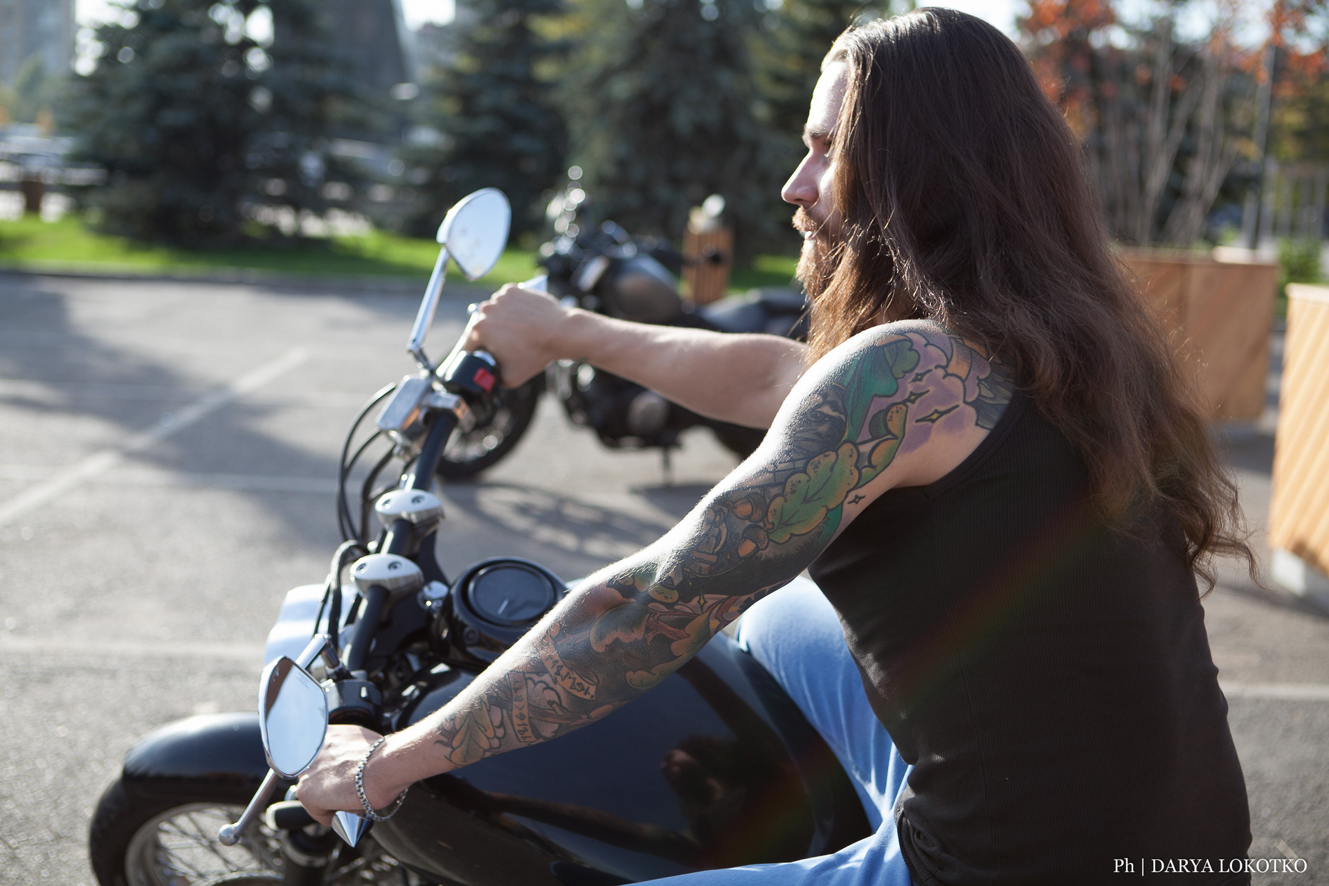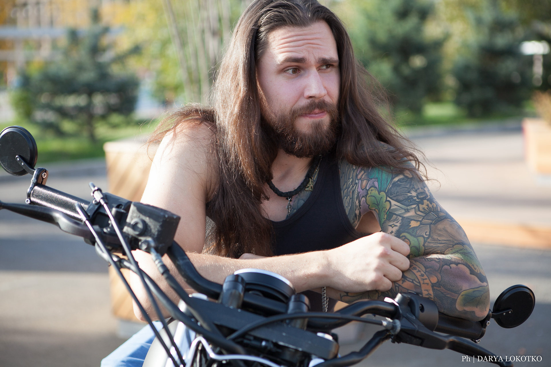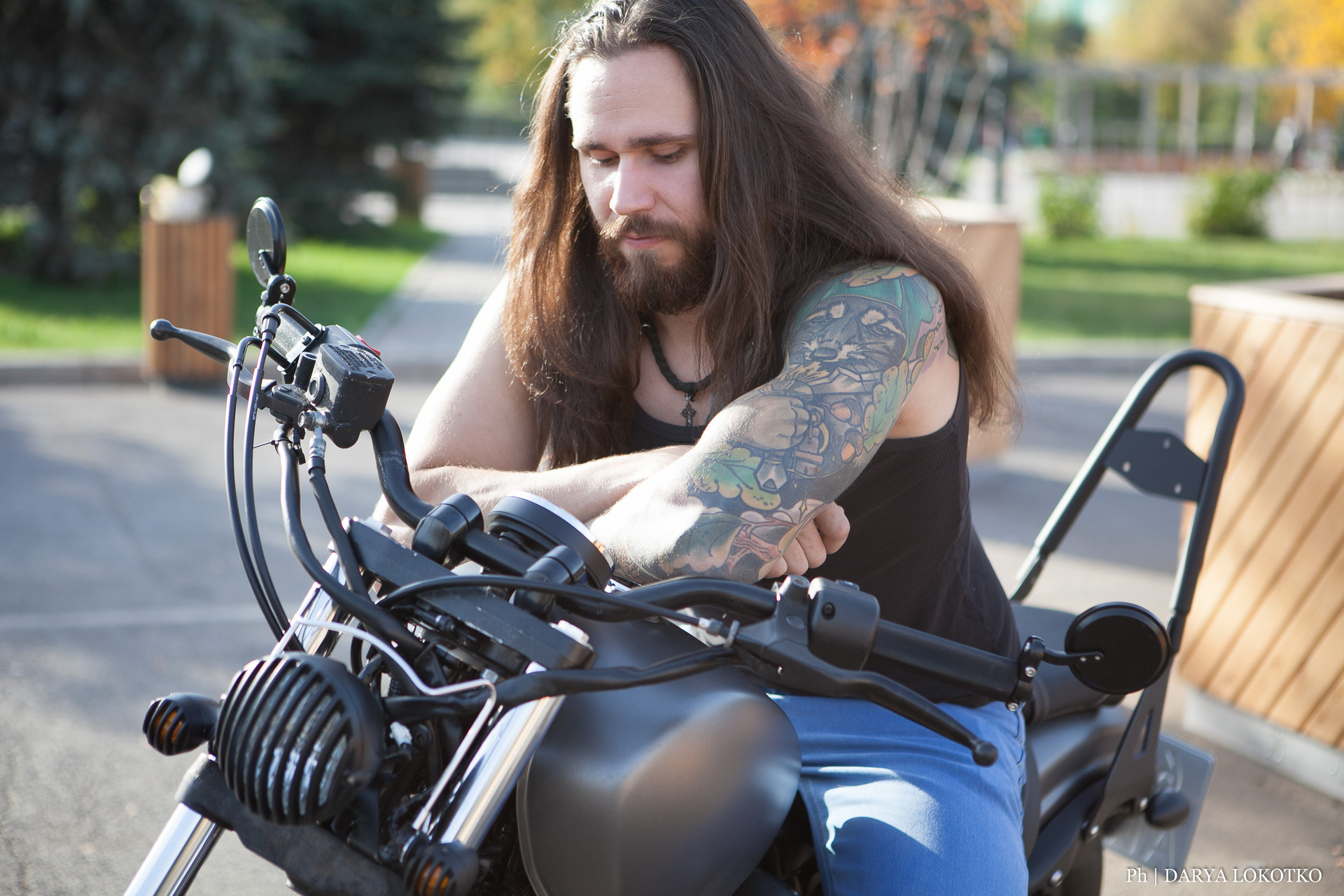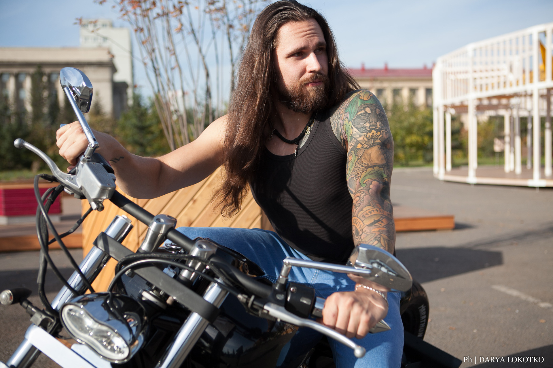 байкер парень мотоцикл руль чоппер фотосессия город лето