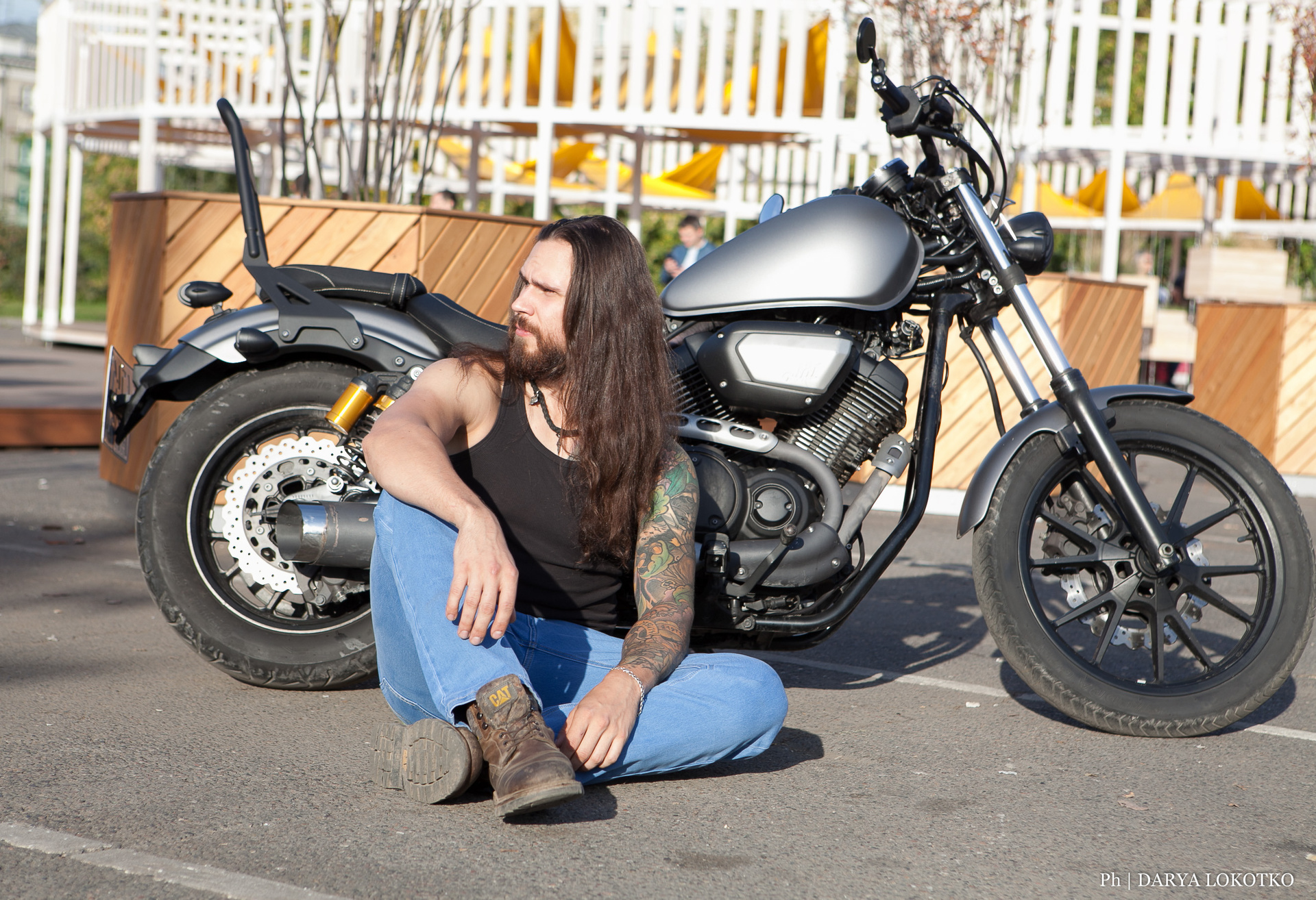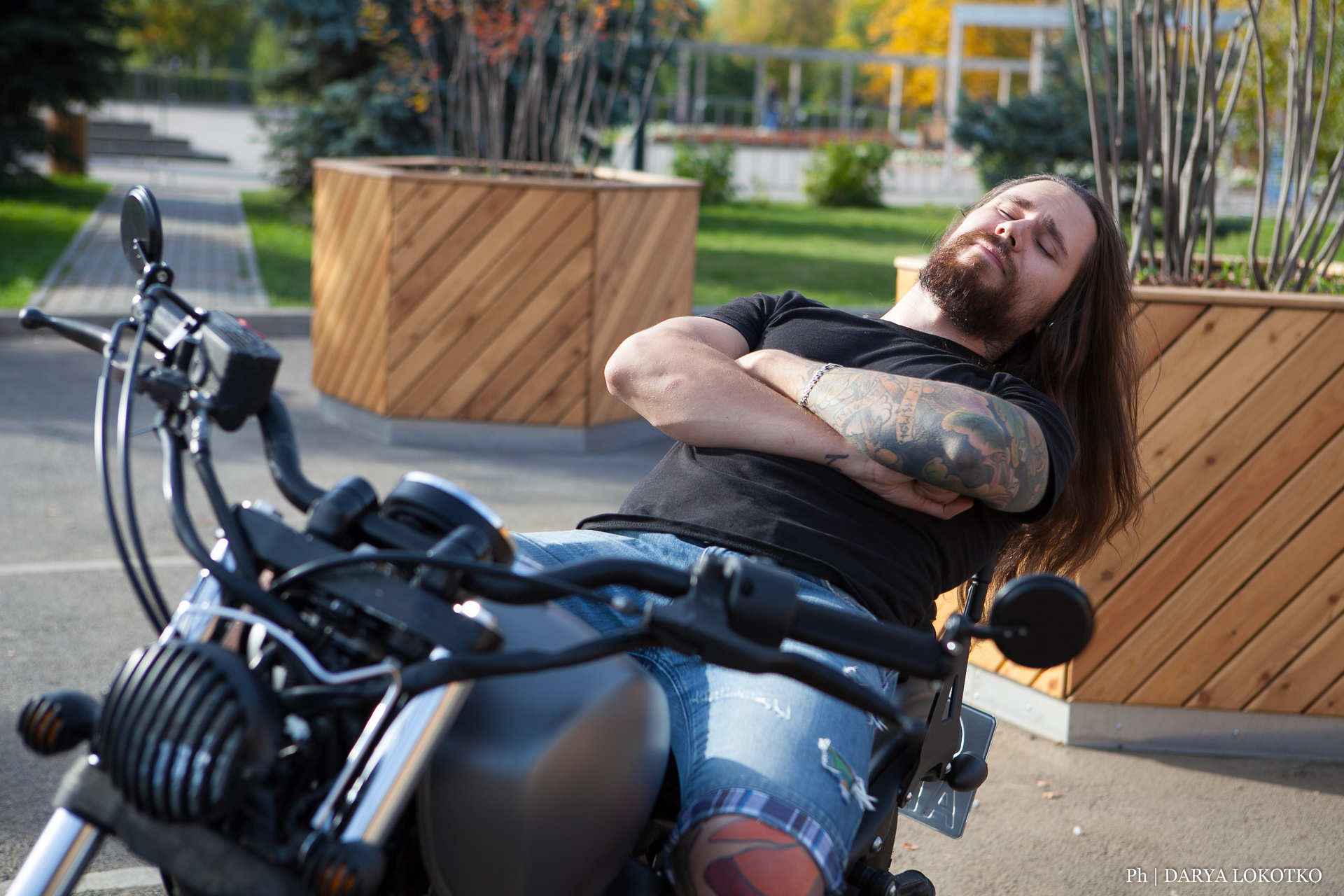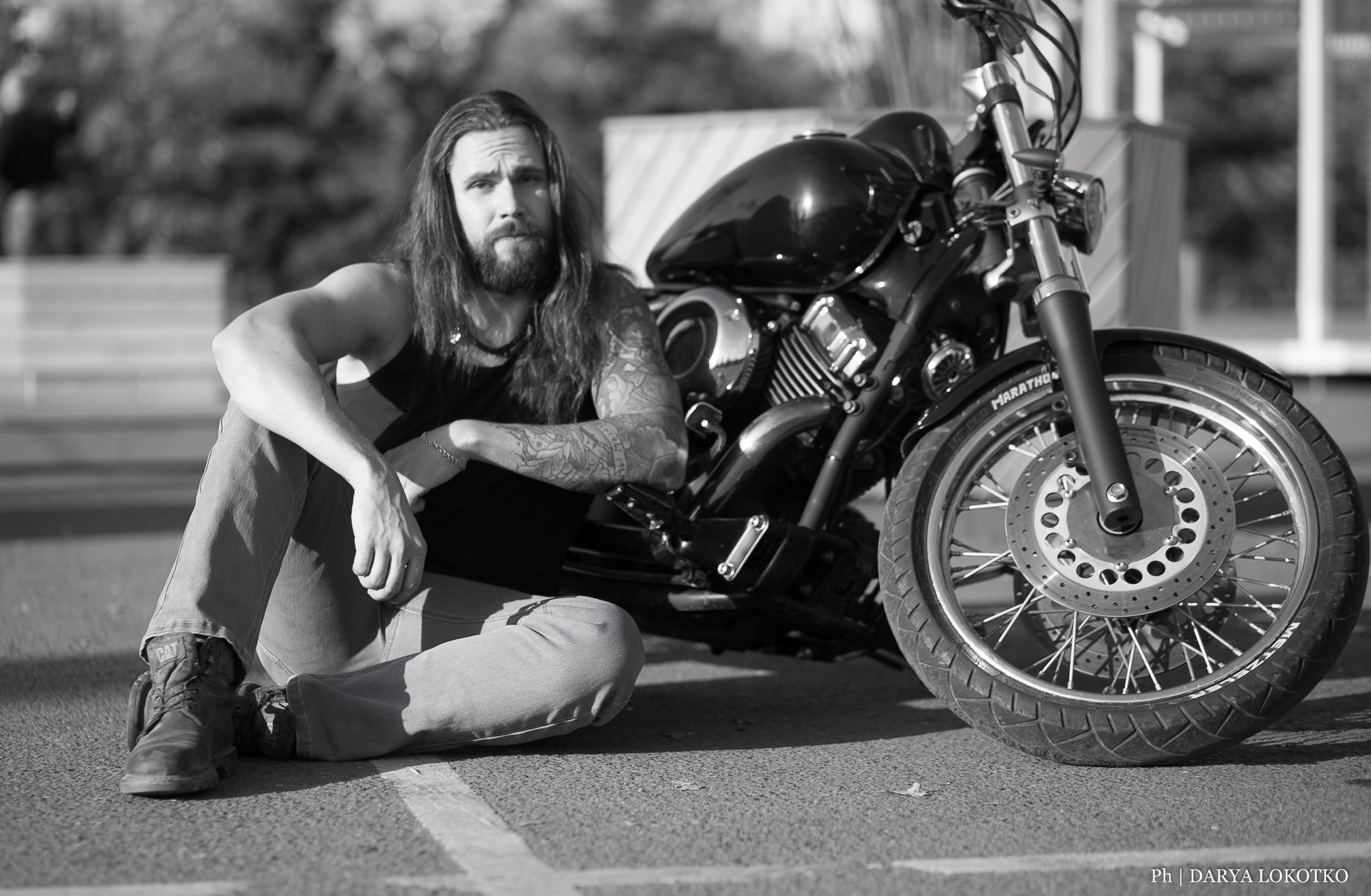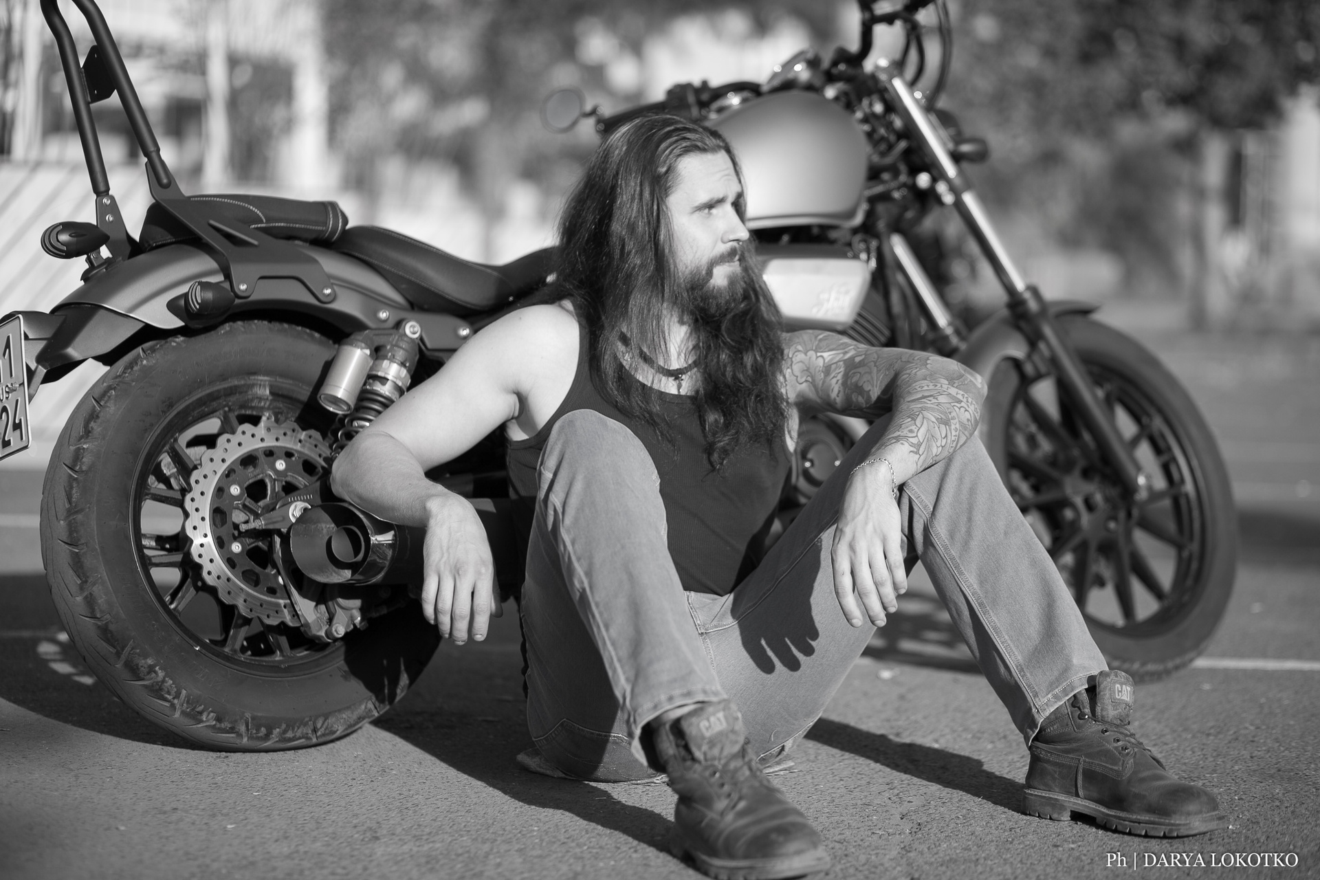 байкер парень мотоцикл руль чоппер фотосессия город лето