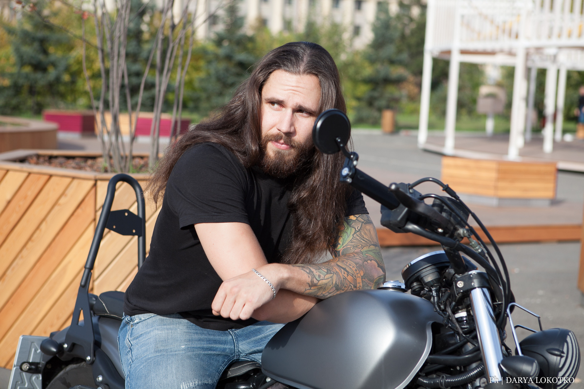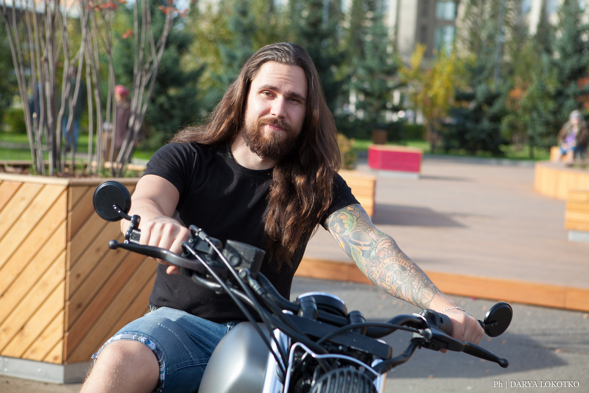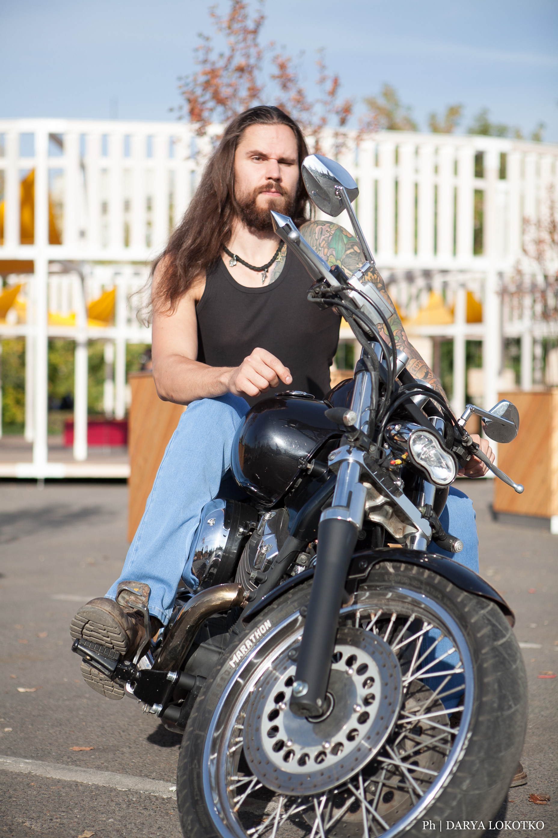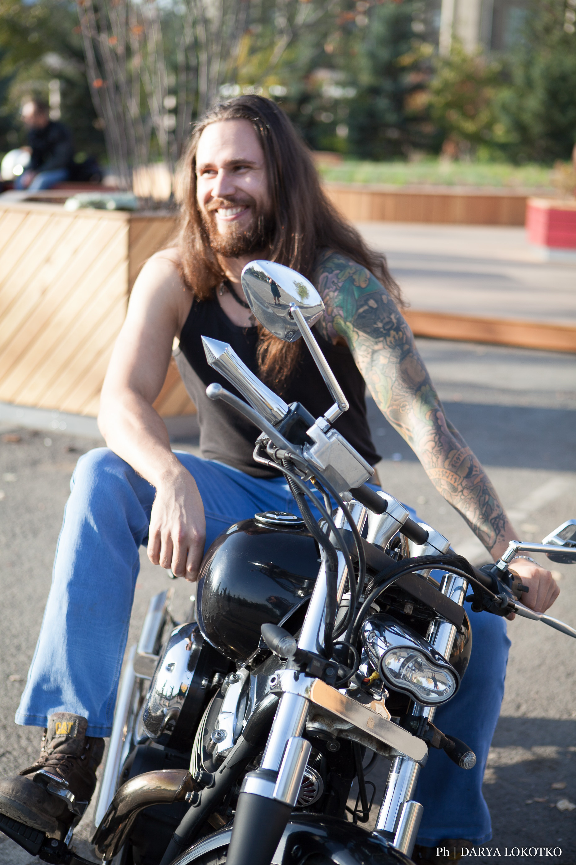 байкер парень мотоцикл руль чоппер фотосессия город лето
