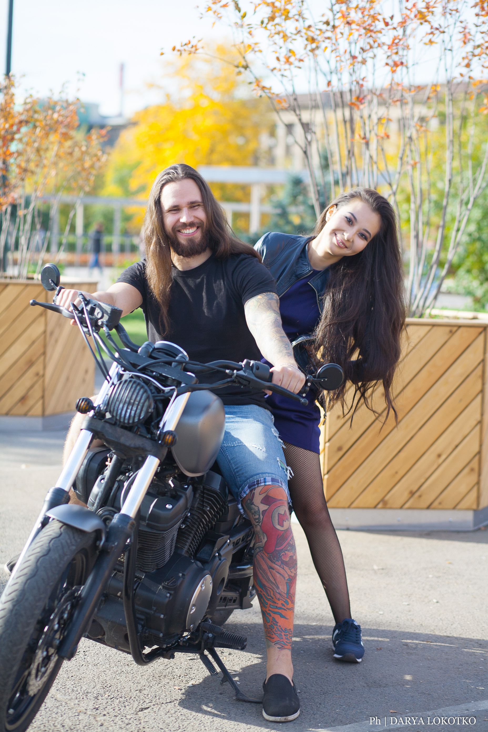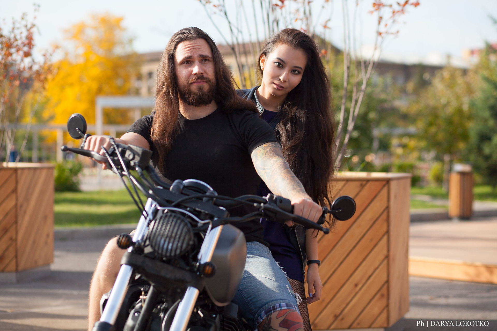 красивая девушка парень чоппер фотосессия город лето