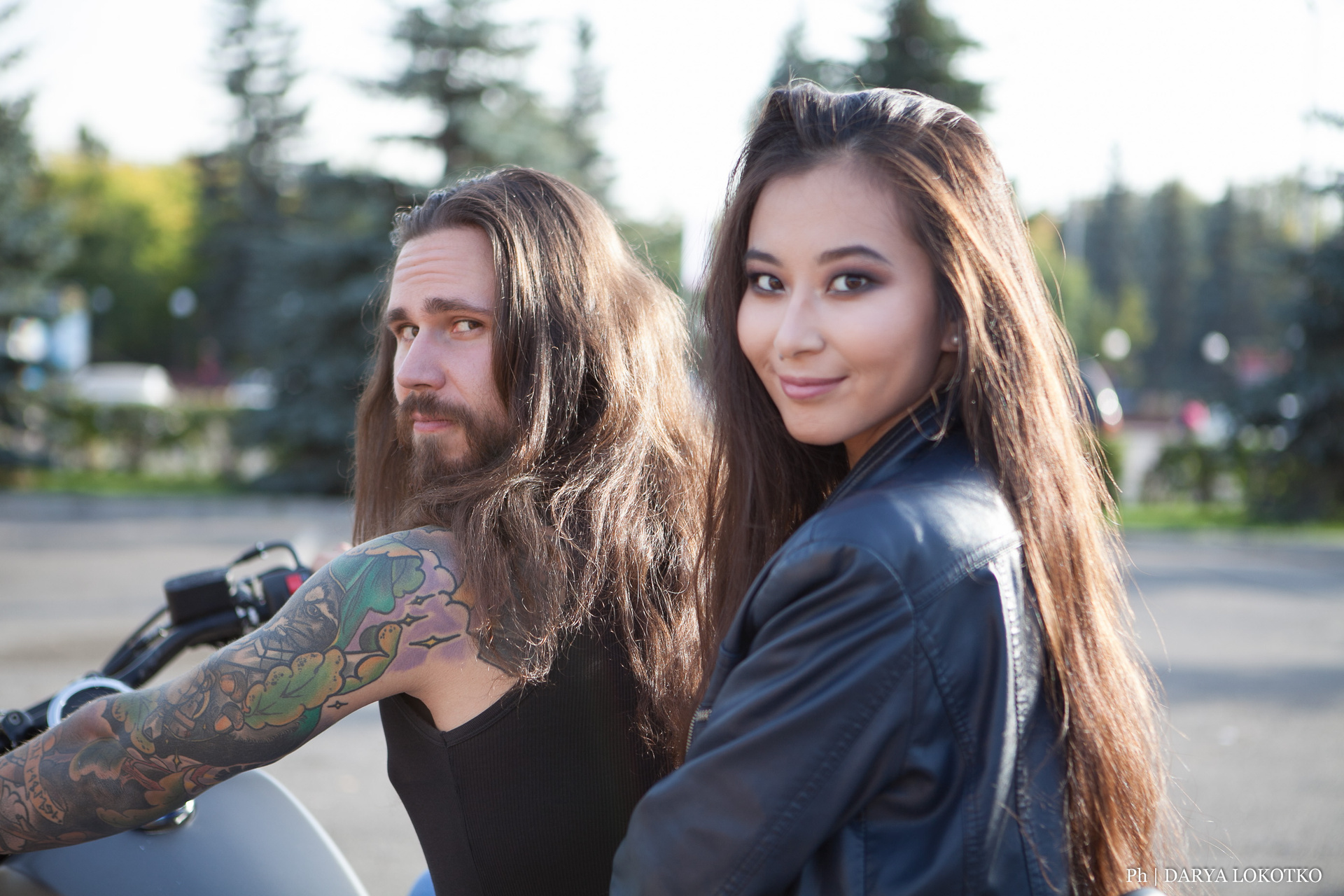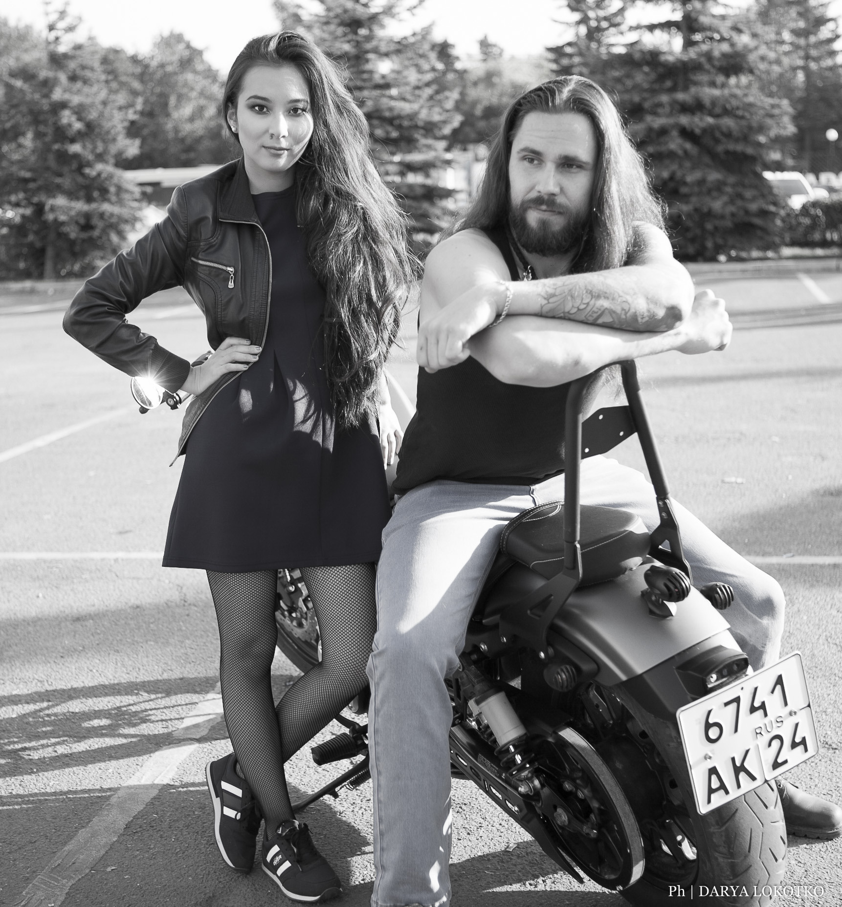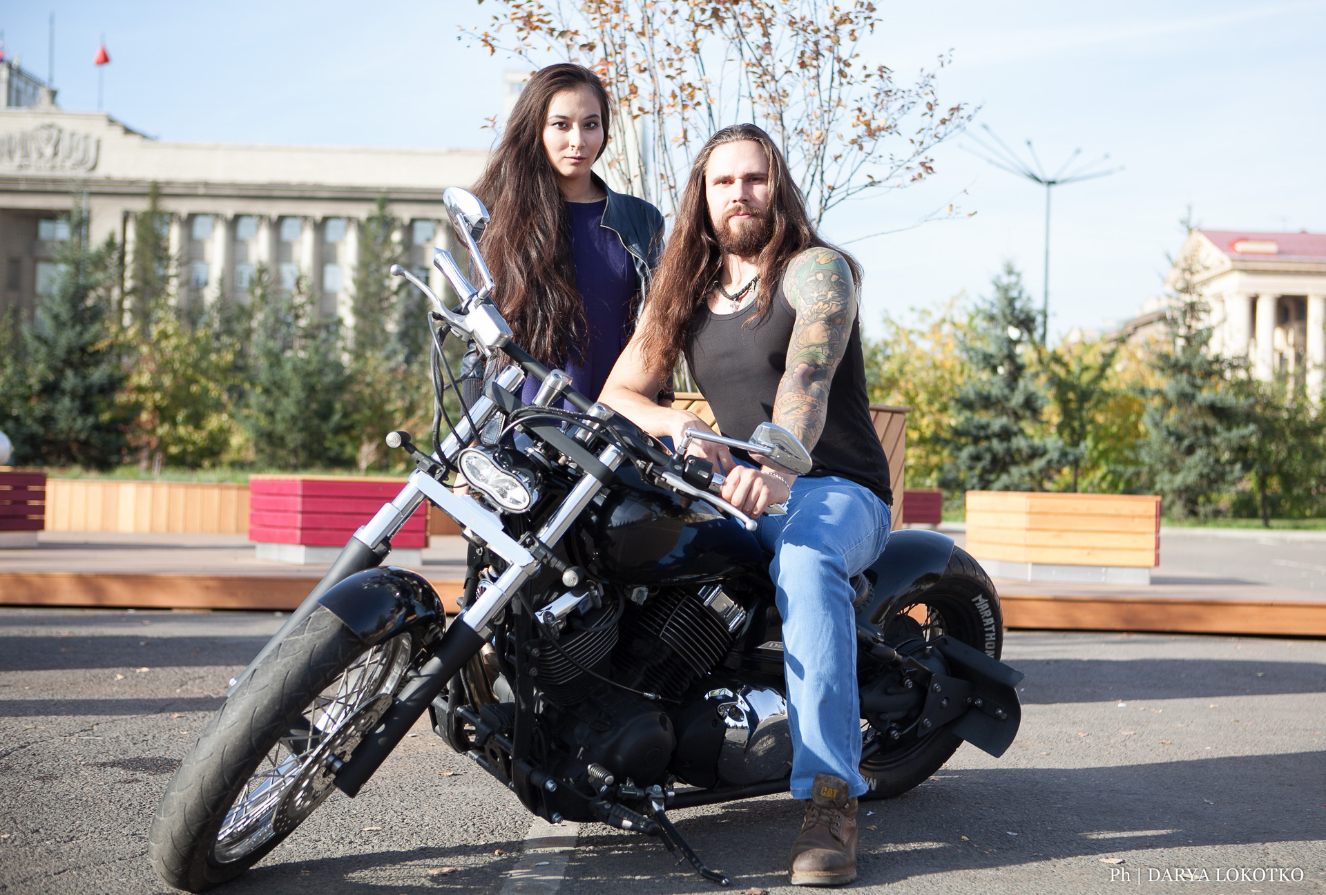 красивая девушка парень байкер чоппер фотосессия город лето