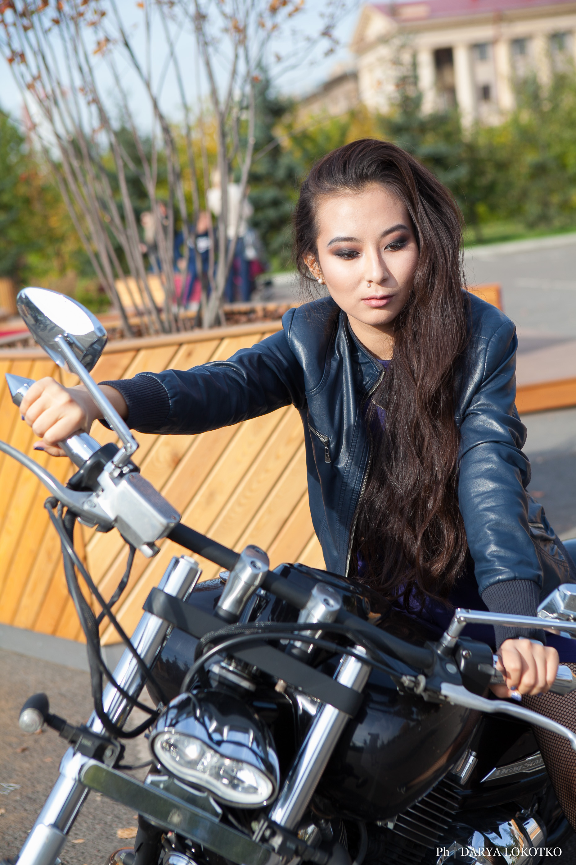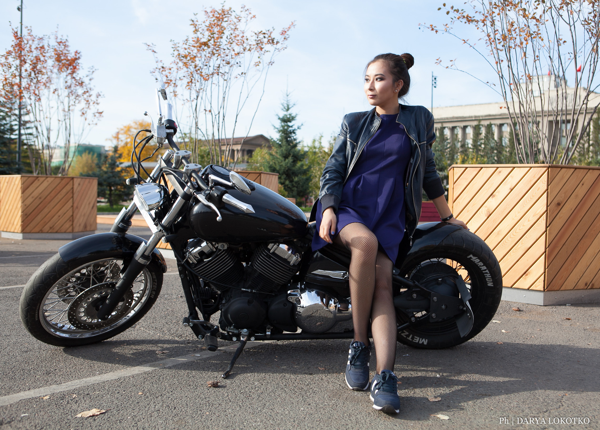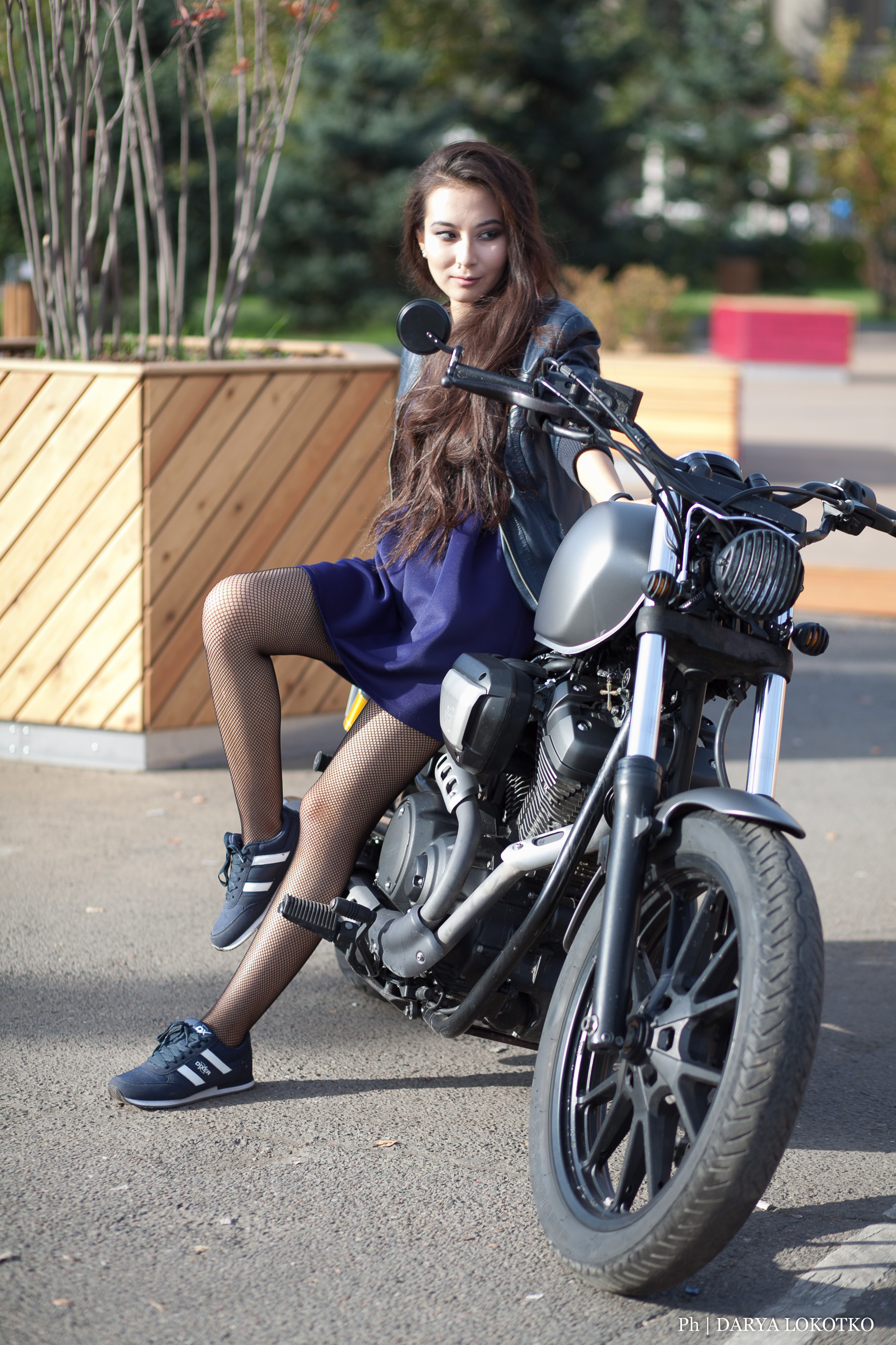 красивая девушка мотик чоппер фотосессия город лето