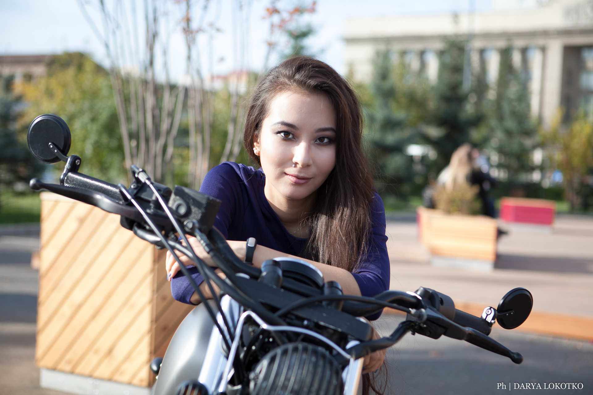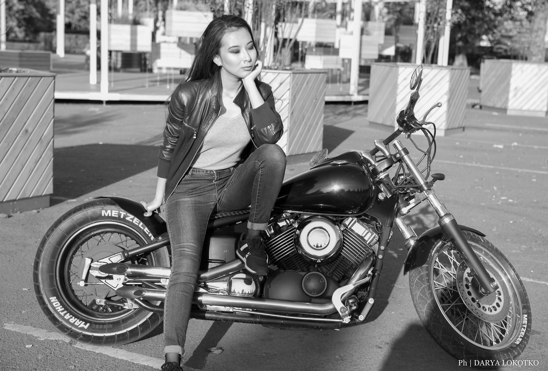 красивая девушка мотоцикл чоппер фотосессия город лето